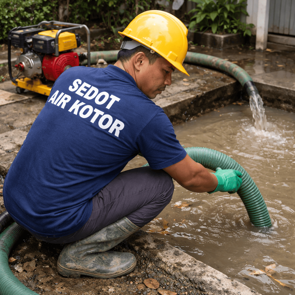 Membersihkan air kotor dan limbah dengan cepat menggunakan peralatan profesional.