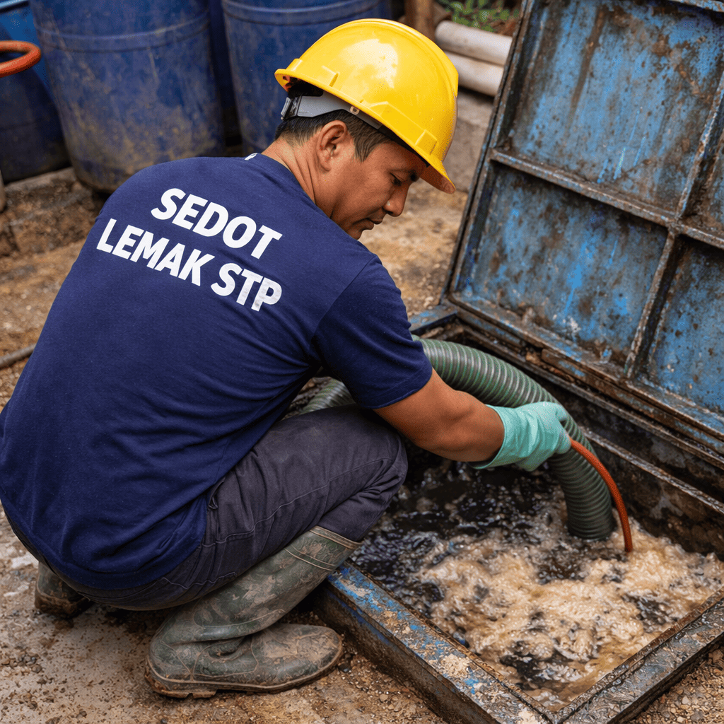 Membersihkan lemak dan limbah pada STP untuk menjaga sistem pengolahan air limbah tetap efektif.