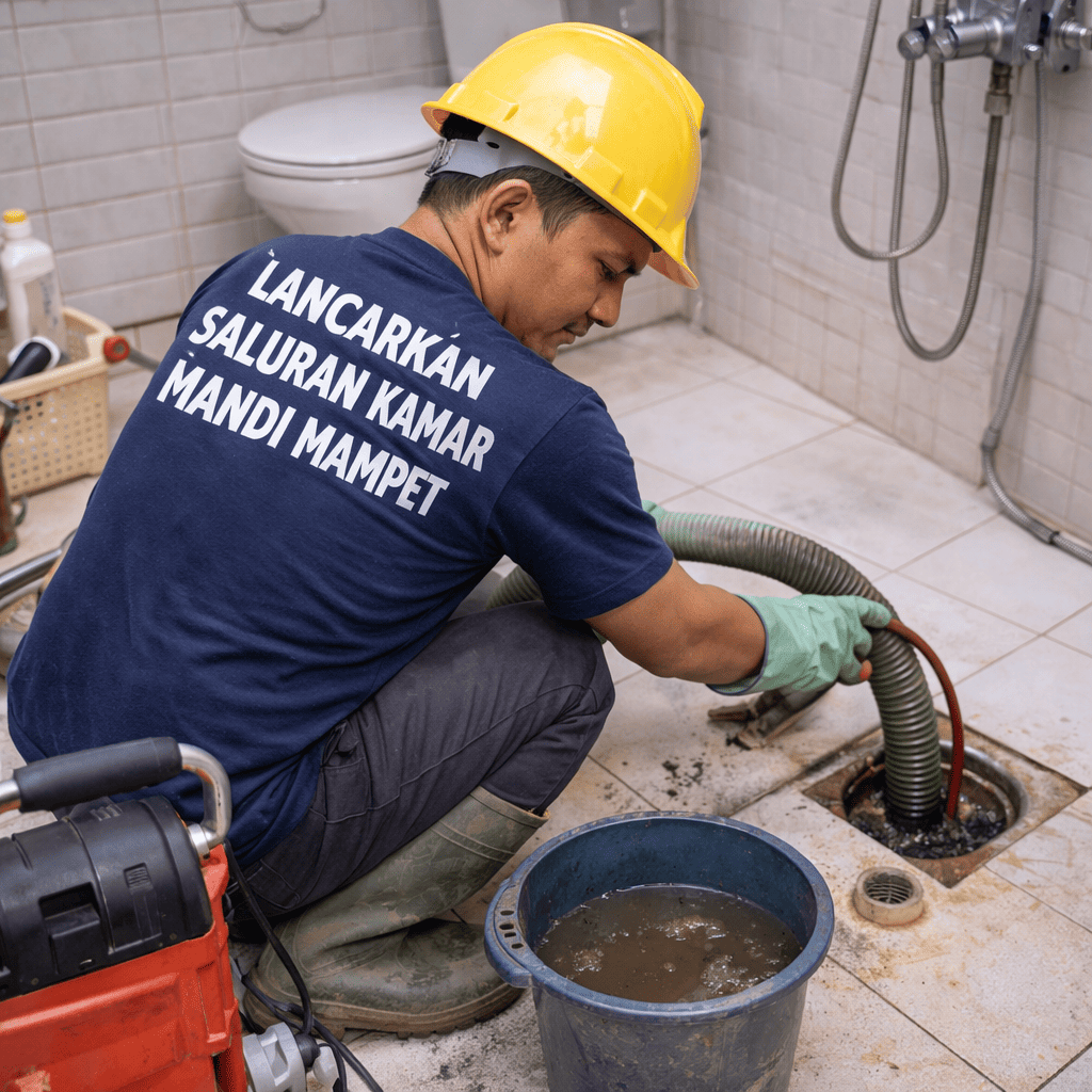 Mengatasi saluran kamar mandi mampet hingga kembali lancar dan bersih.